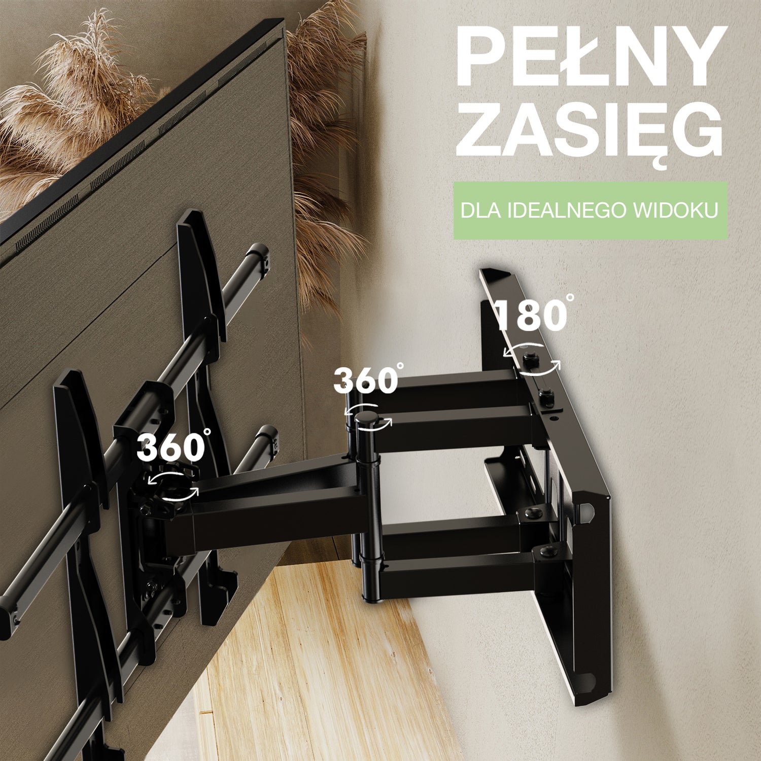 Uchwyt ścienny do telewizora można płynnie obracać o 180°, dzięki czemu możesz oglądać go w dowolnym miejscu w pokoju.