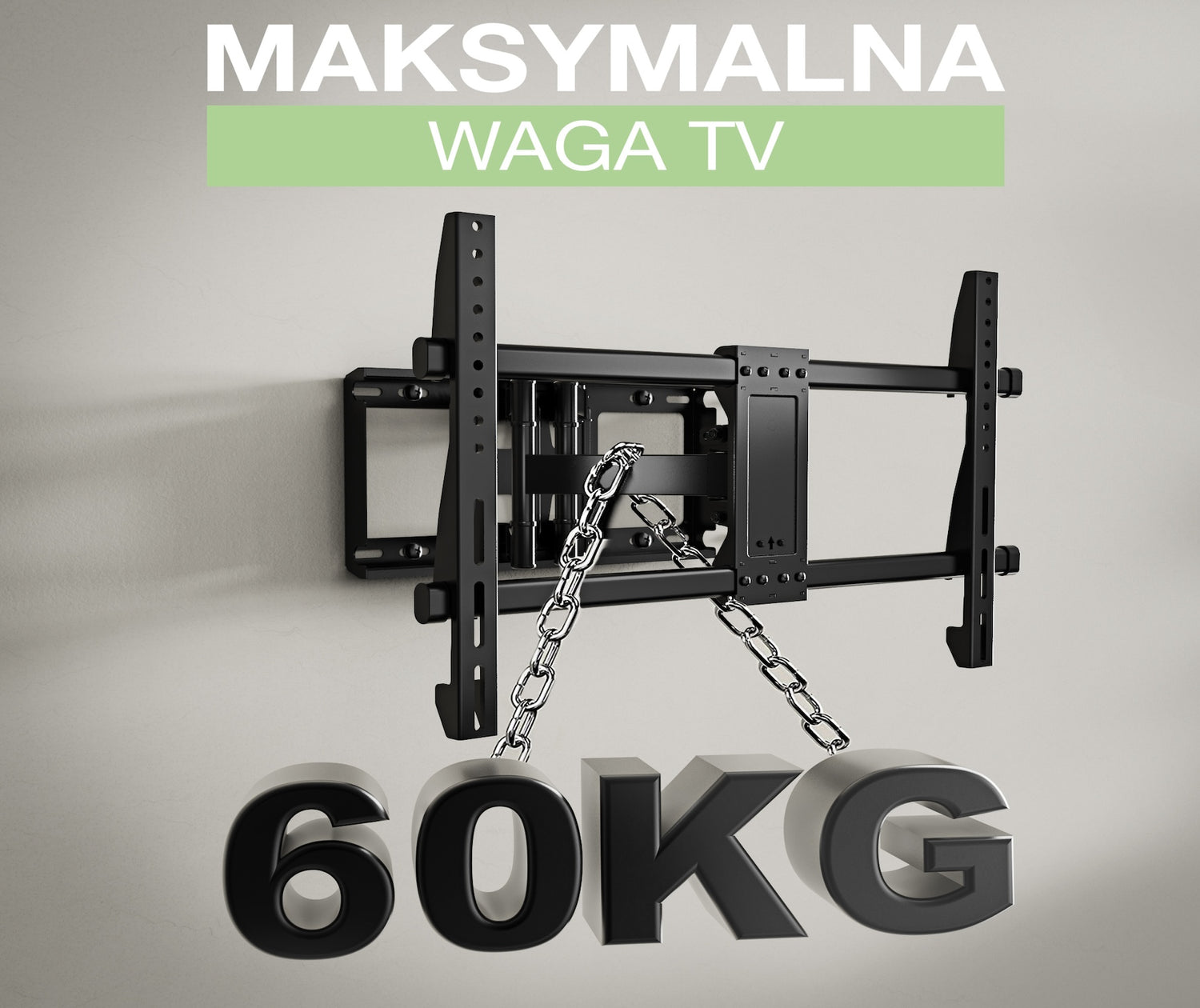 Produkt zaprojektowano z myślą o wytrzymałości i stabilności, utrzyma telewizory o wadze do 60 kg bez zginania. Wykonany ze stali walcowanej na zimno, co daje pewność, że Twój telewizor jest bezpieczny po zamontowaniu na ścianie.