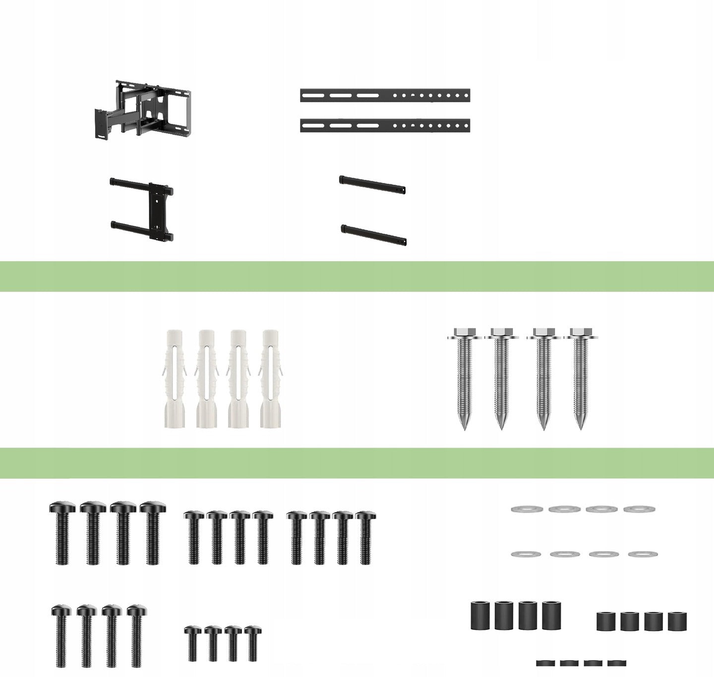 - W skład zestawu wchodzi również instrukcja oraz najbardziej popularne śruby montażowe do telewizorów.